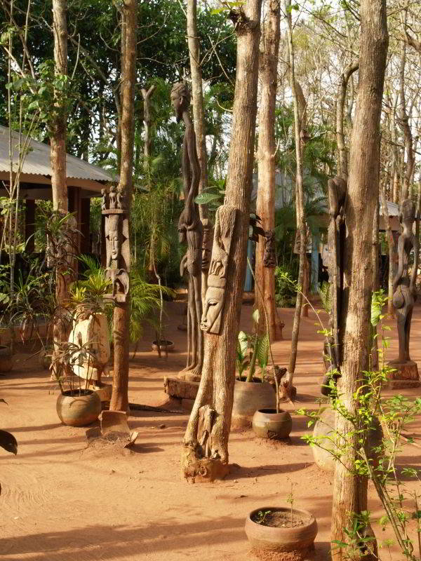 Der Camp-Platz "Chez Monique" in Abomey (N 7° 11.856/ O 1° 58.624) ist unser Abendziel. Toller Garten mit unzähligen grossen geschnitzten Figuren unterschiedlichster Art. Diese werden direkt auf dem Platz hergestellt. Der Platz ist empfehlenswert incl. dem Essen.