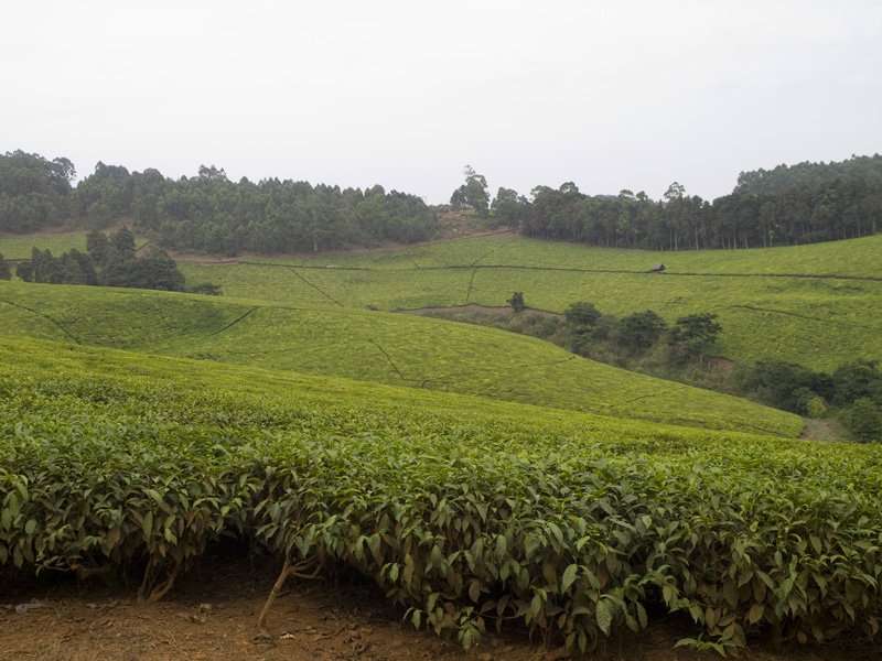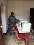In Kumbo mit seiner großen Kathedrale essen wir in einem Strassenrestaurant afrikanisch, d.h. aus Warmhaltebehältern zu Mittag. Es hat uns nicht geschadet, aber wir dürfen nicht übermütig werden. Bei Ndu in über 2000m Höhe fahren wir durch Teeplantagen, in Mbot besichtigen wir die Chefferie, als Führer haben wir den Chef selbst der Herr über 6000 Seelen ist. Nett ist, dass er seinen „Gemeinderat“ für uns zum fotografieren antreten lässt. Der grösste Gegensatz zeigt sich dann, als er auf seinem Thronsessel fotografiert werden will und anschliessend seine 6 Computer im Büro zeigt, das sind eben afrikanische Gegensätze.
