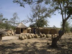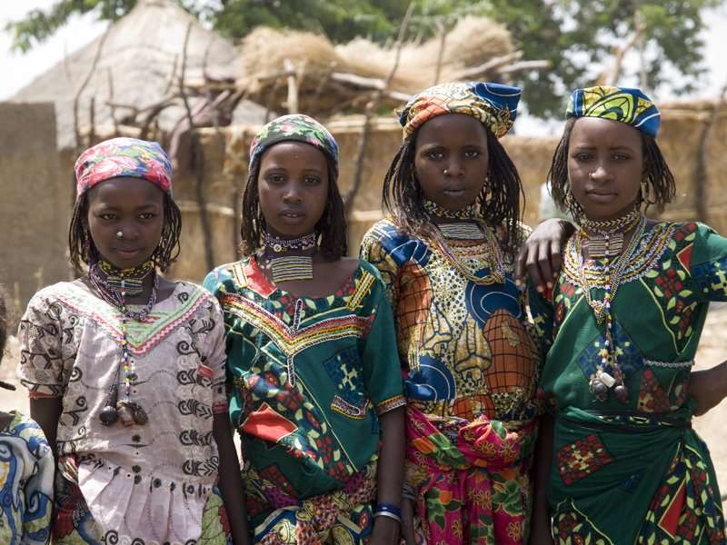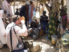 Weiterfahrt über Tchorillé, dort ist alles was man so braucht, Gemüse, Brot und sogar Geld auf der Post erhältlich.. Durch viele Dörfer mit Pumpbrunnen, an denen uns die Fulbemädchen in ihren tollen Kleidern begeistern.