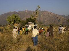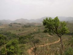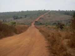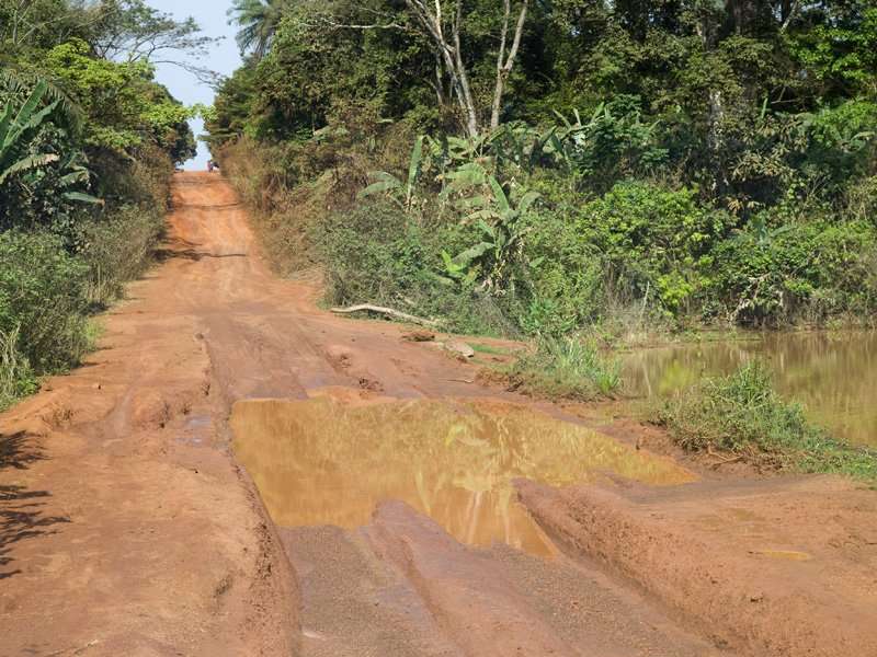 Abzweig nach Poli und in die Alantika Berge. Bis Finyole gute Piste, dann stimmt die Karte nicht mehr. Chinesen bauen eine neue Piste nach Wangay. Diese führt über Voko direkt nach Westen zu einer grossen Brücke über den Faro. In Wangay bekommen wir keinen vernünftigen Übernachtungsplatz im Dorf (es gibt wohl keinen), so fahren wir ein Stück weiter bis auf ein Feld.