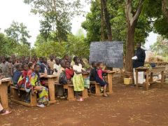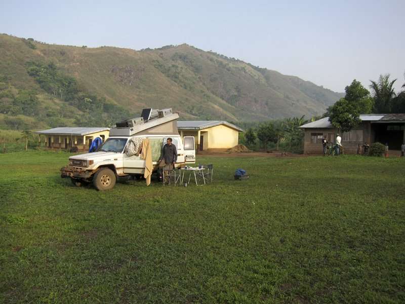 Mangels besserem Übernachtungsplatz campen wir heute mitten auf einem Schulhof, natürlich mit Erlaubnis des Ortsvorstehers, so stellt er sich zumindest vor. Nebenbei, die Verständigung funktioniert überall ausgesprochen gut in Englisch, ich wäre froh ich würde es so gut wie viele Afrikaner beherrschen.