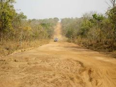 Wir sind auf guter Strasse bis Parakou gefahren, dann wird die Strasse wieder schlecht (viele grosse Schlaglöcher) und wir fahren dann bald in den Busch.
