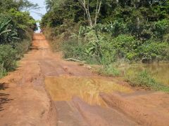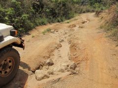 In Banyo Suk Besuch, hier ist es wirklich ursprünglich, als Tourist fällt man auf. Die Menschen sind ungeheuer freundlich, keinerlei Anmache oder Betteln. Mittags in Mayo Darlé Markt, schön, Afrika pur. Die Piste ist beschissen und wurde durch den Regen auch nicht besser, man sieht durch die Pfützen allerdings die Löcher besser. Hinter Bankim übernachten wir in einer Kiesgrube. In 5,5 Stunden reine Fahrzeit haben wir immerhin 150 km geschafft, es geht nicht schneller, es ist kaum Verkehr, die Temperaturen liegen so bei 25°C, immerhin fahren wir bis auf 1350m hoch hinauf.
