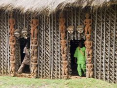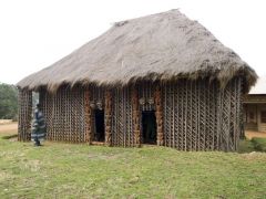 Weiterfahrt bis Mittags nach Foumban auf übler Piste. Foumban hat ca. 55 000 EW. und ist Sitz des Sultans der seit 1992 als 19. Herrscher der Bamoun Dynastie hofhält, und von der Bevölkerung verehrt wird. Der Besuch des Palastmuseums lohnt sich. Marktbesuch, wobei uns auffällt, dass die Menschen hier längst nicht so fröhlich sind wie anderswo bisher. Natürlich kaufen wir auch hier einige schöne Figuren, man wird regelrecht überschwemmt davon. Irgendwo im Busch übernachten wir bei ziemlicher Luftfeuchtigkeit und nur noch 20°C am Abend.