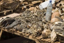 Mit dem Führer vom letzten Jahr besichtigen wir den Königspalast von Abomey. Die Besichtigung ist lohnenswert auf Grund der ausgestellten Exponate, vor allem der Herrscherthron auf den Schädeln von Feinden, aber leider ist Fotografierverbot im ganzen Palastbezirk. Dann auf den Fetischmarkt, gruselig mit den vielen toten Tieren bzw. Tierteilen wie Affenköpfen, für mich völlig unerklärlich was damit getan werden soll/muß um irgend etwas zu bewirken oder Kenntnisse zu erlangen. Voodoo halt.