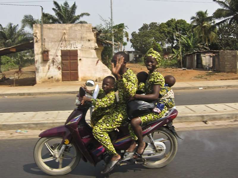 Abfahrt Richtung Benin. Grenzabfertigung für Aus- und Einreise knapp eine Stunde ohne jegliche Probleme. Weiterfahrt nach Abomey über Cotoneau – die Direktverbindung lt. Karte von Ouidah aus gibt es nicht (?). Verblüffend für uns auch jetzt noch, wieviele Personen auf ein Moped passen. Die Strasse von Cotoneau aus ist schlecht. Bei der Einfahrt nach Abomey zerschlägt es eine Kiste auf dem Dach, die angegebenen 2.50m Höhe an der Höhenbegrenzung werden durch die durchhängende Stange mit nach unten herausschauender Schraube auf 2.40m eingeschränkt, das geht ja gut los. Bei „Chez Monique“ übernachten wir wie letztes Jahr. Das Handy funktioniert auch in Benin.