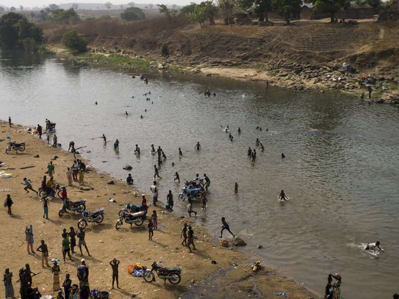 Bis Mokwa auf guter Strasse, bis Bida mit kurzen Abschnitten ebenfalls gute Strasse. Olaf betätigt sich auf einer Brücke als „Kinderfänger“ mit dem zeigen von Filmabschnitten. Es ist schon erstaunlich wie uns die Kinder sofort beim Anhalten umringen und fotografiert werden wollen, um sich dann unter grossem Geschrei auf dem Bildschirm zu erkennen.
