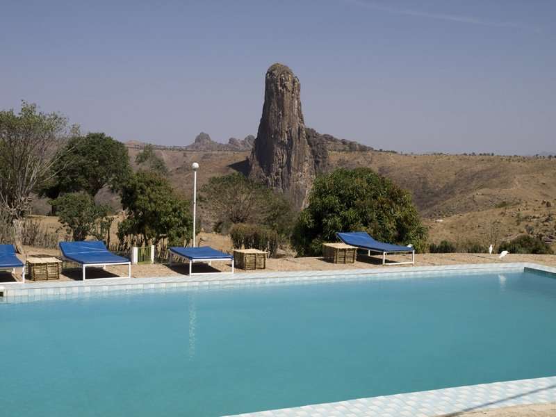 Im Campement von Rhumsiki auf 1100m Höhe suchen wir uns einen Platz mit fantastischer Aussicht, wir sind die einzigen Touris.