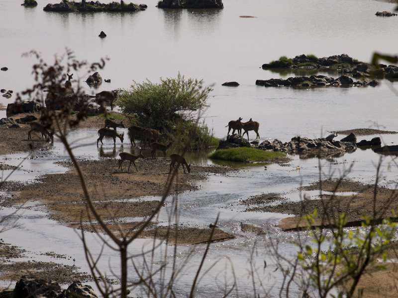 Es lohnt sich dort hinzufahren, denn Mittagessen mit Antilopen im und am Fuss hat man auch nicht alle Tage und das anschliessende Bad im Fluss ist sehr erfrischend bei 42°C um 15 Uhr. Um 19 Uhr, so hatten wir das Abendessen bestellt, kommt ein guide, der uns die beste Stelle zeigen soll, wo wir den „Capitaine“ d.h. unser Abendessen angeln könnten (so haben wir das verstanden). Wir verzichten aufs Angeln und verpflegen uns aus den Vorräten.