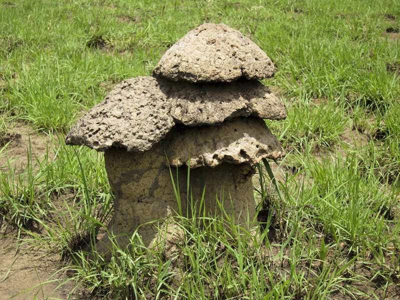 Schlechte Piste aber tolle Landschaft. Unterwegs sehen wir ganze Wiesen voller Pilze aus Stein. Das sind die Behausungen von Termiten.