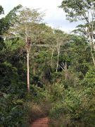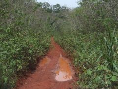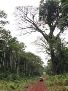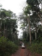 Den Besuch des "Reserve de Dja" schenken wir uns, denn 30 000CFA (fast 50 Euro) für ein paar Stunden im Wald herum zu laufen ist uns zu teuer und zu aufwändig. Dieser Park ist für Fahrzeuge nicht erschlossen. Wir beschließen stattdessen auf einer in der Karte gestrichelten Piste weiter nach Westen zu fahren. Karte und Natur sind mal wieder zweierlei, die Piste zweigt erst ca. 10 km nördlich von Mindouro ab, wo sie in der Karte eingezeichnet ist. Sie führt direkt nach Westen auf Nkonzou zu.