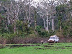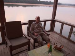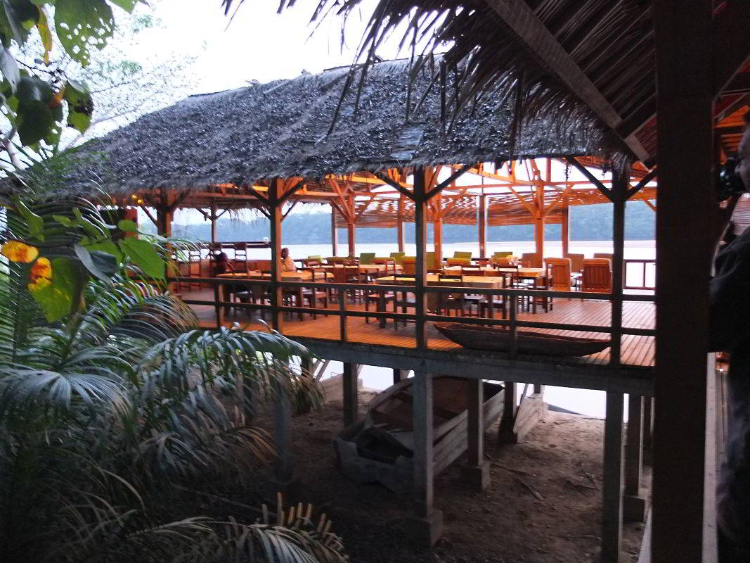 Beim WWF buchen wir für den Mittag gleich die Elefanten. Doli Lodge, toll gelegen direkt am/über dem Fluss. Wir können den Betreiber überzeugen, dass wir auf dem Parkplatz stehen und übernachten dürfen für insgesamt 16.- Euro incl. Dusche und WC pro Nacht, statt 120.- Euro pro Nase für ein Zimmer zu bezahlen. Im Moment sind wir die einzigen Touristen hier. Es ist eigentlich nicht zu heiß hier, 33° C und das am Äquator mitten im Urwald.