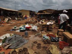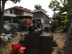 Batterie kaufen – normaler Preis für die Passende. Versicherung, Ölwechsel und Abfahrt gegen 15.00 Uhr Richtung Limbe am Fuß des Mount Cameroun. Unterwegs vermutlich ein schwerer Unfall hinter Tiko, großer Stau – Umleitung über Außenwohngebiete quasi durch die Hinterhöfe, Chaos pur auf übelster Offroadpiste zwischen den Hütten.