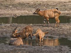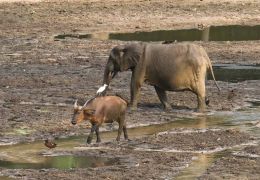 Gigantisch, 60 -70 Elefanten, Bongos, Büffel und Riesenwildschweine mit bis zu 230kg Gewicht auf einer großen Lichtung. Sie kommen hierher um Mineralien aufzunehmen. Es ist ein sehr tolles Erlebnis dies zwei Stunden lang von dem großen Hochstand aus erleben zu können.