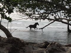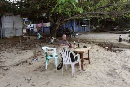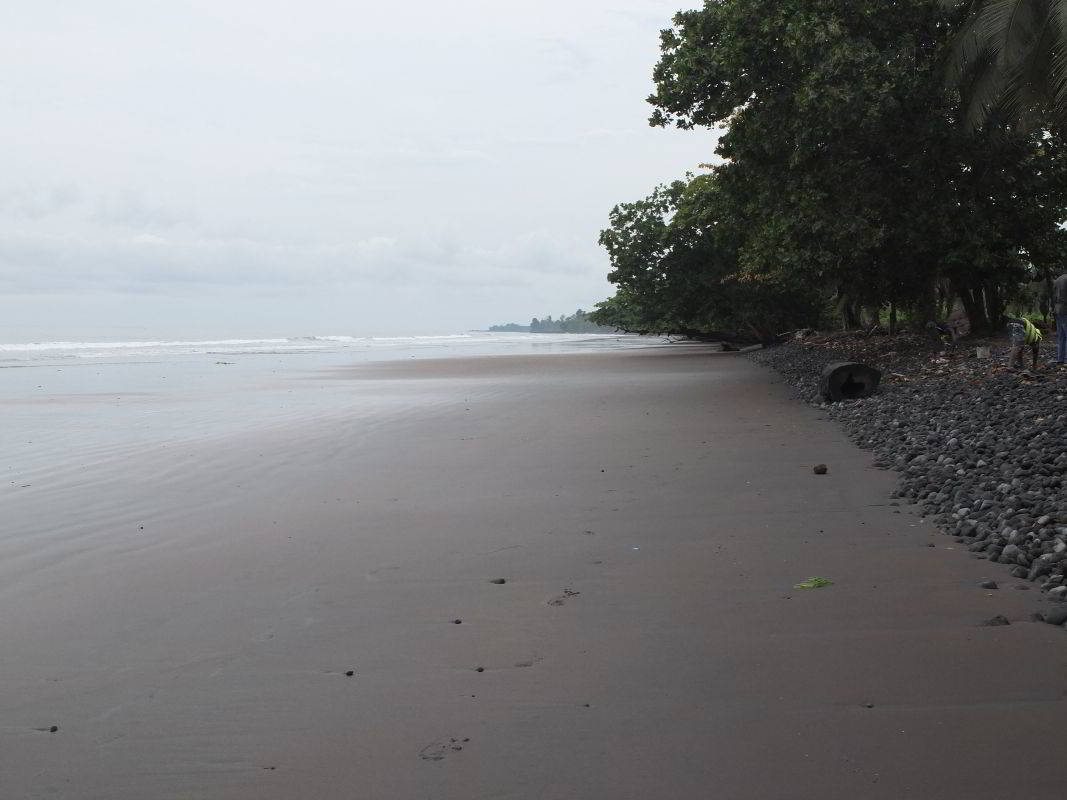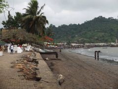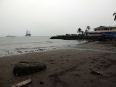 Auf einer kleinen Piste fahren wir hinunter in Richtung Limbe und sind am Meer. Im "Seme New Beach Hotel" (ca. 20km westlich von Limbe) können wir auf dem Parkplatz stehen und übernachten. Die Anlage hat auch schon bessere Zeiten erlebt, das Restaurant ist sehr teuer und schlecht. Mittags hat es 32° C und es tröpfelt, trotzdem gehen wir am schwarzen Strand aus Lavasand spazieren.
