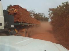 Es hat die erste Nacht nicht geregnet, es ist um 9 Uhr angenehm kühl mit 24°C. Mittags 13 Uhr in Bertoua bei 35°C. Bis kurz vor Bertoua wunderbarer Asphalt, dann jedoch schlimmste LKW Wellblechpiste in Richtung Batouri. In einer Sandgrube neben der Piste übernachten wir.
