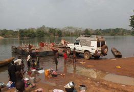 Nola tanken, (doppelter Preis wie in Kamerun = 1000CFA) – 2x übersetzen mit den Pontons, und es geht wieder auf der selben Piste zurück nach Westen.