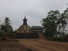 Dann sind wir in Buea in ca. 750m Höhe. Wir finden zum Übernachten das "Guesthouse der Presbyterianer", es ist wahrscheinlich die einzige Möglichkeit hier in Buea. (Bergauffahren bis zu einem Kreisel in ca. 1000m Höhe – hier sieht man den von Jesko von Puttkammer zur Kolonialzeit erbauten Präsidentenpalast – dort rechts ca. noch 400m.)