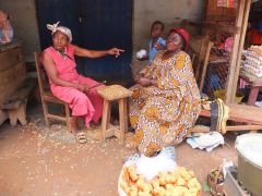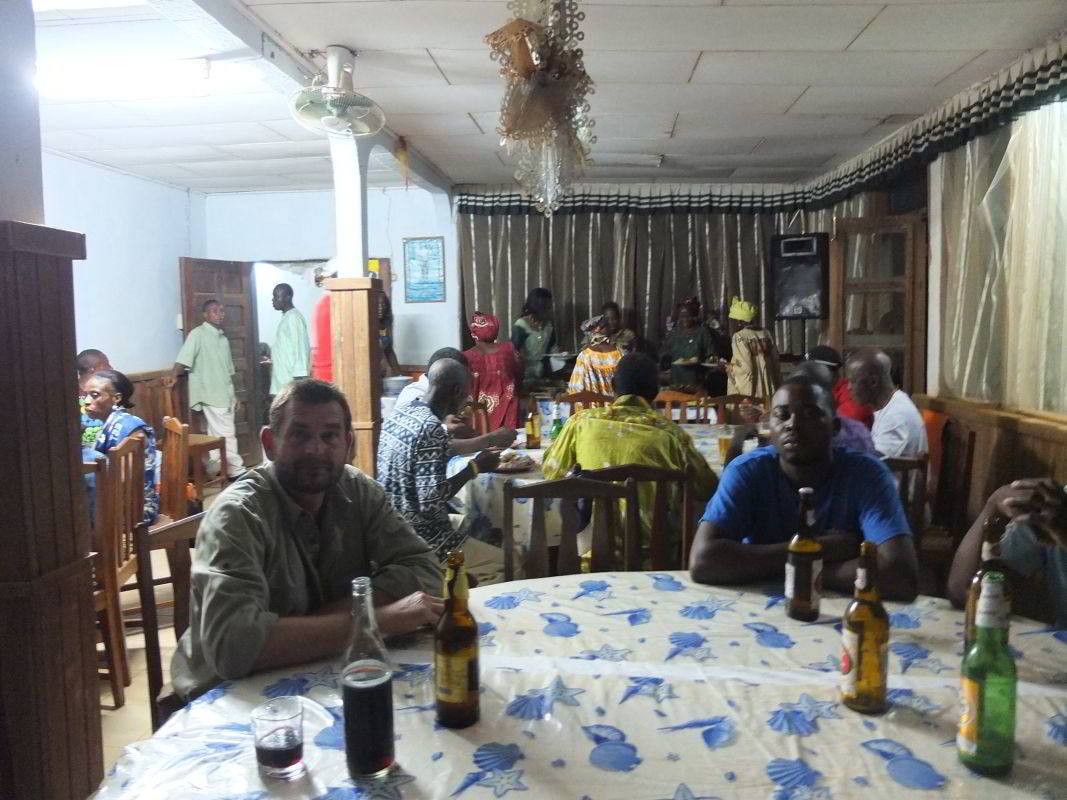 Lomié ist eine größere Ansiedlung mit Markt, Läden mit allem was man braucht, Diesel könnte man sicher von den vielen Truckern (Holztransporte) bekommen. Wir fahren ins Hotel, ja das gibt es auch und können dort auf dem Hof campieren. Die Wirtsleute haben heute Kommunion, so können wir (gegen Bezahlung) am Essen teilnehmen. Später kommt noch eine Abordnung von WWF mit Regierungsbeamten und eine französische Touristengruppe.