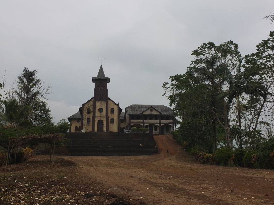 Bei Minedou (3° 41.700/13° 04.500) treffen wir auf eine gute Piste bis Messaména. Dieses Dorf liegt auf der von uns ausgesuchten Piste Richtung Süden. In Dimpan steht eine große Backsteinkirche - das wäre was zum Übernachten. Der polnische katholische Priester bietet uns seine Dusche und Klo an, der Hof ist sauber und ohne Fliegen – prima. Er gibt uns auch einen guten Tipp in Bezug auf unsere Weiterfahrt. Er selbst betreut mit dem Auto ein großes Gebiet und kennt sich aus, entgegen vielen Einheimischen, welche kaum über ihr Dorf hinauskommen. Er sagt uns, dass die Brücken südlich von Dimpan in Richtung Sangmélima kaputt bzw. nicht mehr vorhanden sind, so dass wir wieder nach Norden nach Akonolinga fahren müssten.