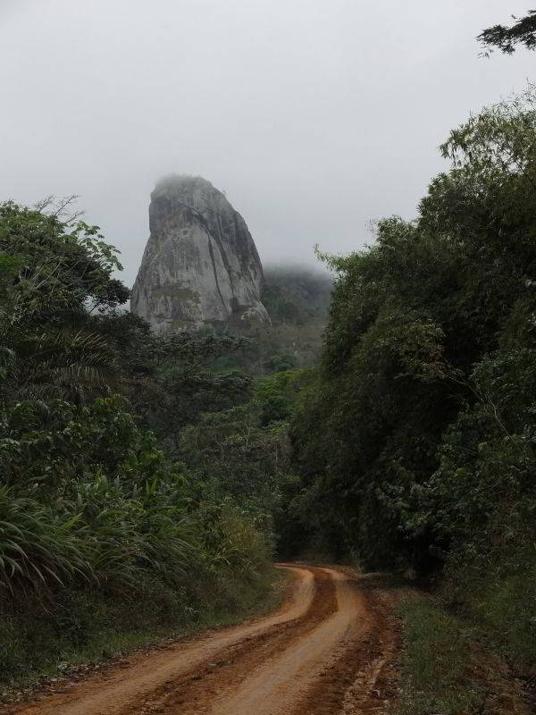 Weiterfahrt zum Felsen bei Nebel – na ja, wir haben ja Zeit. Ansonsten kein lohnenswertes Ziel. Zurück über Ebolowa in Richtung Westen nach Kribi. Von den 130 km ist ca. die Hälfte schlechte, ausgefahrene Piste.